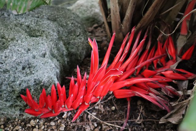 岩場のすき間からのぞく、真っ赤な花姿がとってもインパクトありますよね🌺