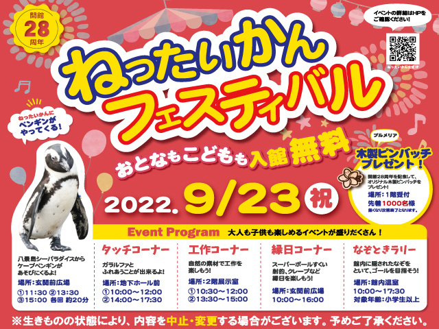 開館28周年を記念して、9月23日(祝)は入館を無料として玄関前の広場や館内で催しを行います。
