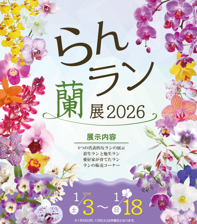 2026年の第一弾となる企画展示として、1月3日(土)~18日(日)にかけて美しいランの花を観賞できる「らん・ラン・蘭展2026」を開催します!💐🎍