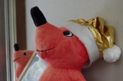 ツリーを置いたり、チーバくんに帽子をかぶせたり、
