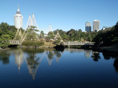 この時期、見浜園では例年冬の風物詩となっている「雪吊り」と「こもまき」を見ることができます!