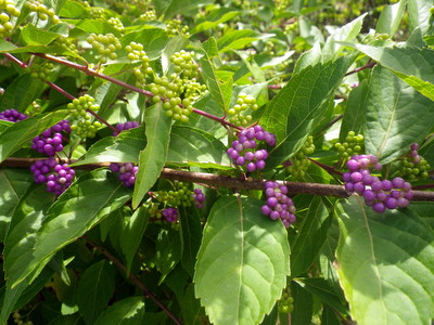 紫式部(ムラサキシキブ)の実。色づき始めです。