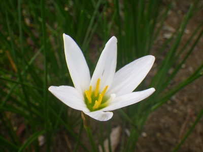 見浜園の入口前に池がありますが、その脇に植えた、球根植物「タマスダレ」がよく咲いています。