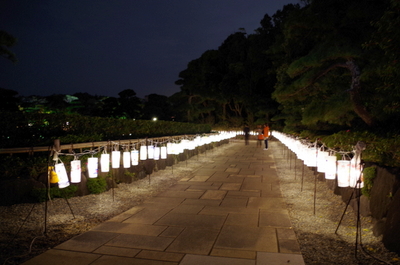 庭園入口をくぐると手作り灯ろうがズラリ!