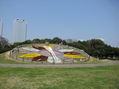 季節毎にお花で彩られる花時計とマリンデッキ。