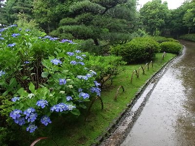 アジサイの花も咲いていますよ。しとしとと降る雨の中可憐に花を開かせるアジサイもいいですね。