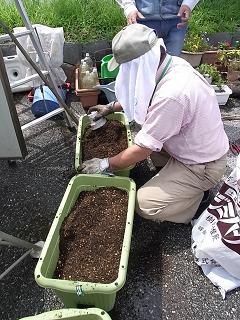 第一回目のテーマは「キッチンガーデン」、料理にも使えるハーブの寄せ植えを行いました。