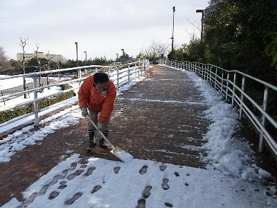 スタッフは公園利用の皆様の足元が汚れないように雪かきしました。