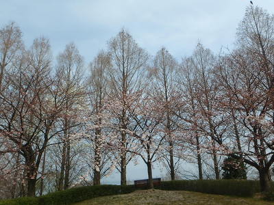 遊具広場の芝生で一足早いお花見ができますよ♪