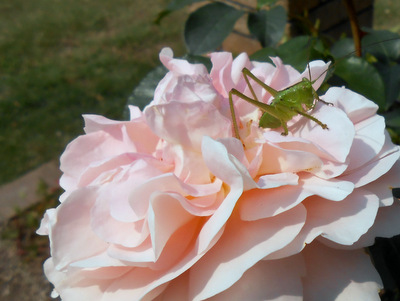 小庭園の奥のバラのなかで一番に花びらをほどいたのは「キャラメルアンティーク」。