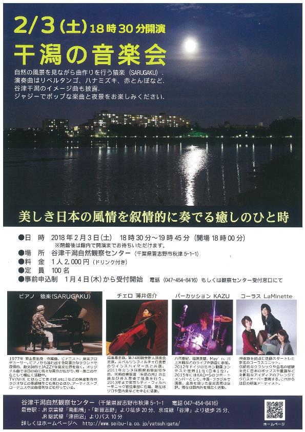 2月3日(土)、観察センター閉館後に観察フロアにて音楽会を行います。
