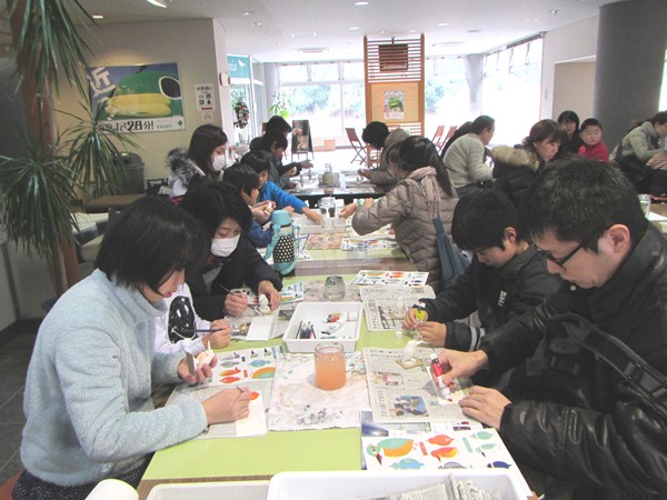 鳥を描く方が多く、中には薮内さんの図鑑を見ながら絵を描くお子さんもいました。