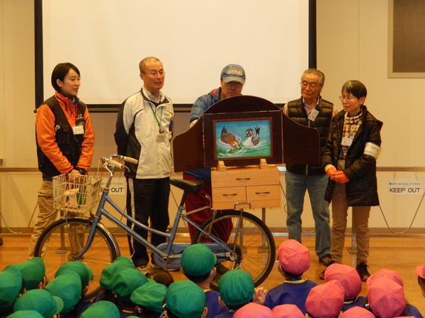 1月は市内の私立幼稚園約140名を迎え、集まった9名のボランティアと観察センターのオリジナル紙芝居を上演したり、観察フロアでカモやサギなどの観察を一緒に楽しみました。
