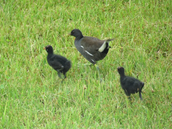 お昼頃に2羽のヒナを連れたバンファミリーが観察センター前にやってきて一安心しました。