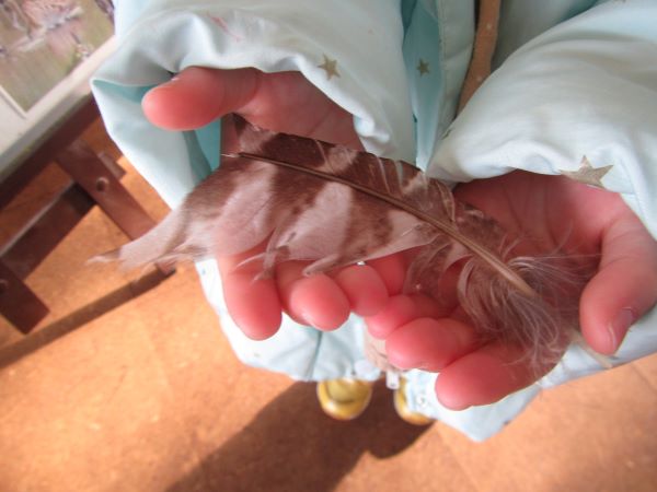 常連の女の子が公園の駐車場で拾った大きな羽。