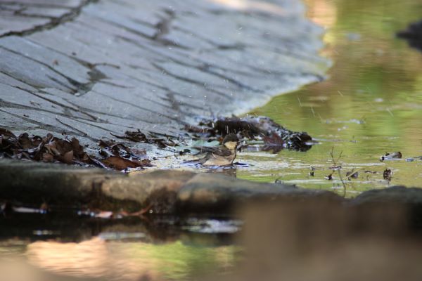今日はハシブトガラス、キジバト、シジュウカラなどが涼を求めて水浴びをしていました。