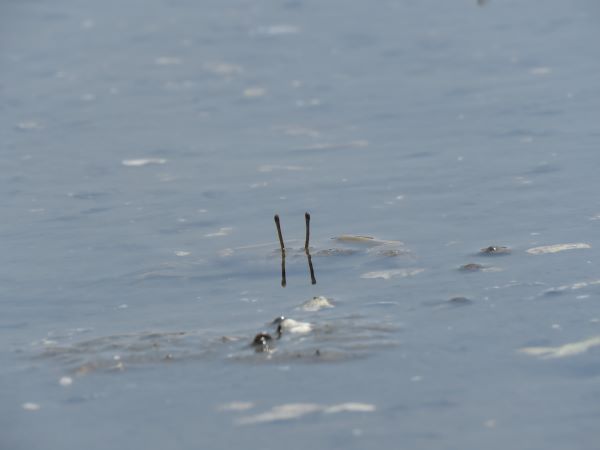 昨日の夕方、干潟にシギ・チドリ類が集まり、採食していました。
