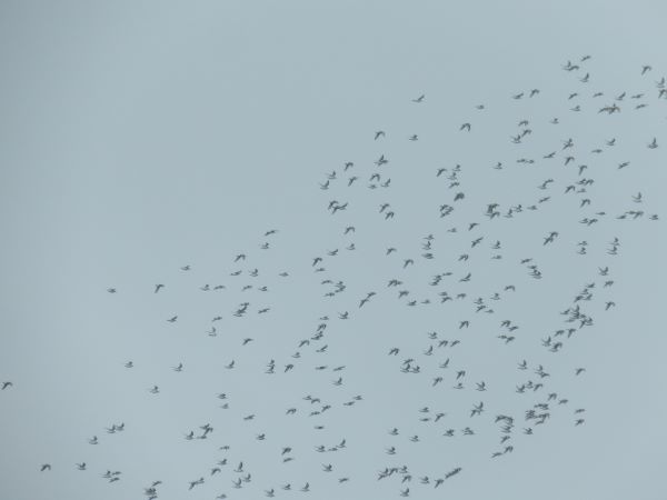 今日は日中とても潮が引いたので、干潟で採食しているハマシギが約900羽いました。