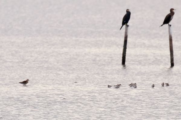 初めての旅で1羽では寂しいのか、ハマシギたちにくっついているところがかわいいと思いました。