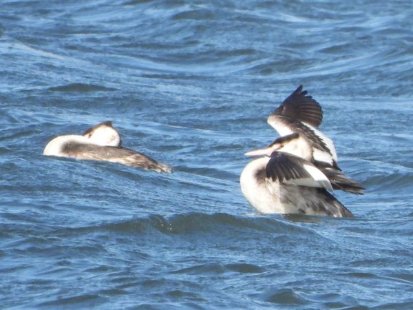本日、カンムリカイツブリ2羽を今シーズン初めて確認しました。