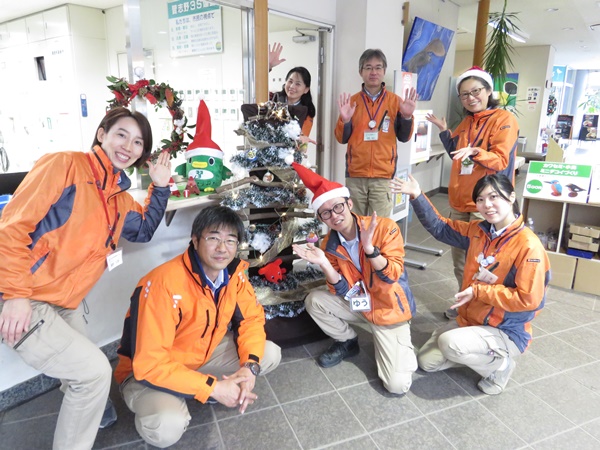 今日から12月になり、館内に手作りのクリスマスツリーやリース、サンタなどを展示しました。
