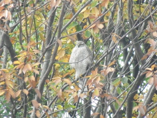 昨日はタカの仲間のハイタカが、淡水池の後ろの木にとまって、