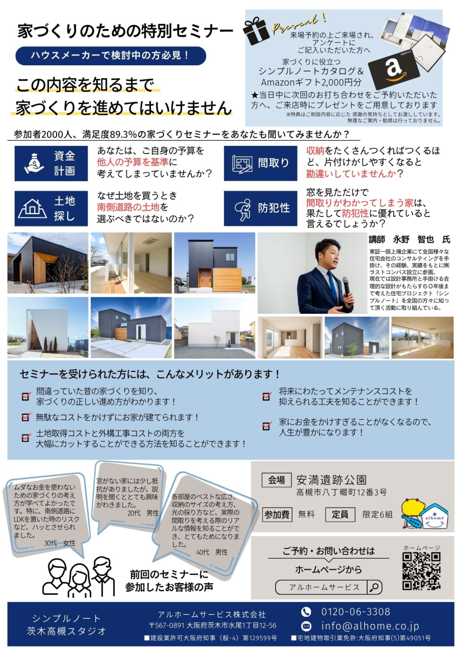 主催者名:アルホームサービス株式会社 シンプルノート茨木高槻スタジオ