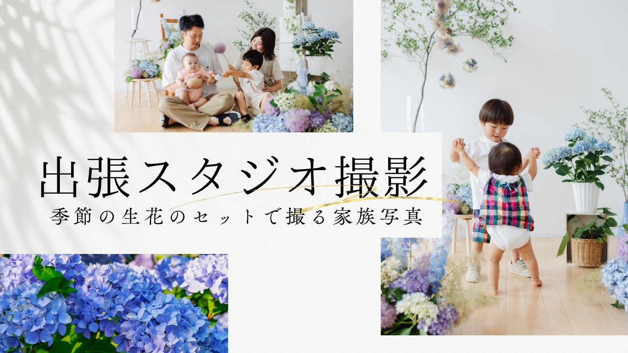 季節のお花フレッシュなアジサイで装花された空間で、お子様やご家族の自然な姿を撮影して頂けます。いつも写真を撮る側になってしまいがちなお母さんに少し早めの母の日に家族でのお写真をプレゼントするのもおすすめです!!