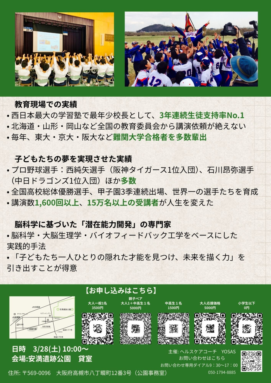 子どもの眠っている才能にスイッチON!メンタルプロデューサー川谷潤太さんから、毎日の声かけや目標設定、失敗を力に変える自己肯定感の育て方を、親子で楽しく学べる特別セミナーです。