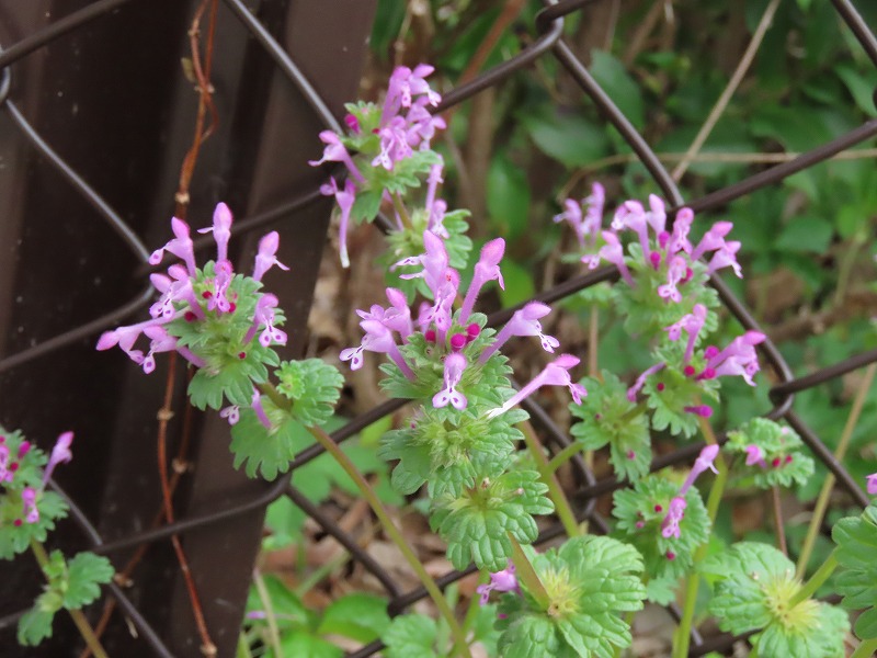 同じ紫色をした花を咲かせるヒメオドリコソウです。生息場所もよく似ており、隣同士で咲いているところもよく見かけます。