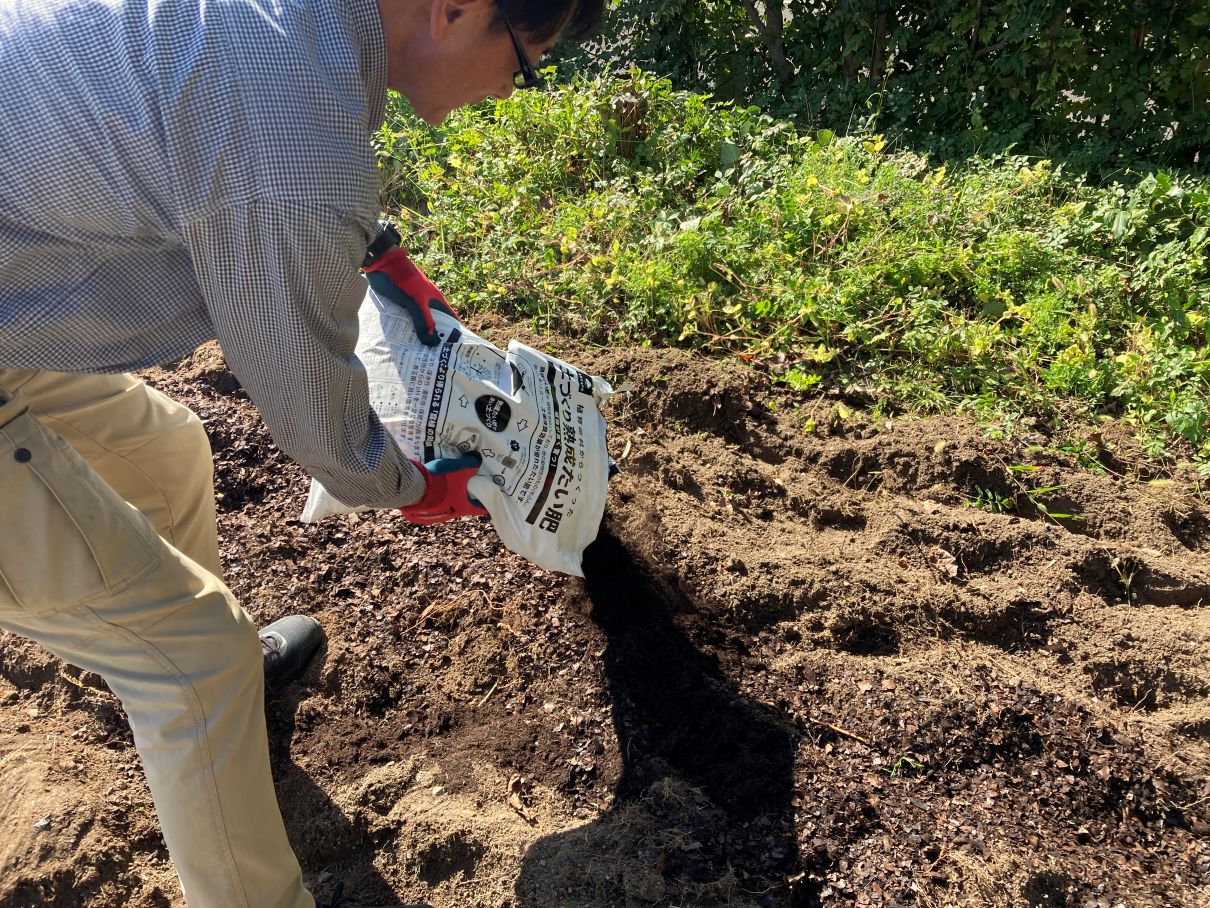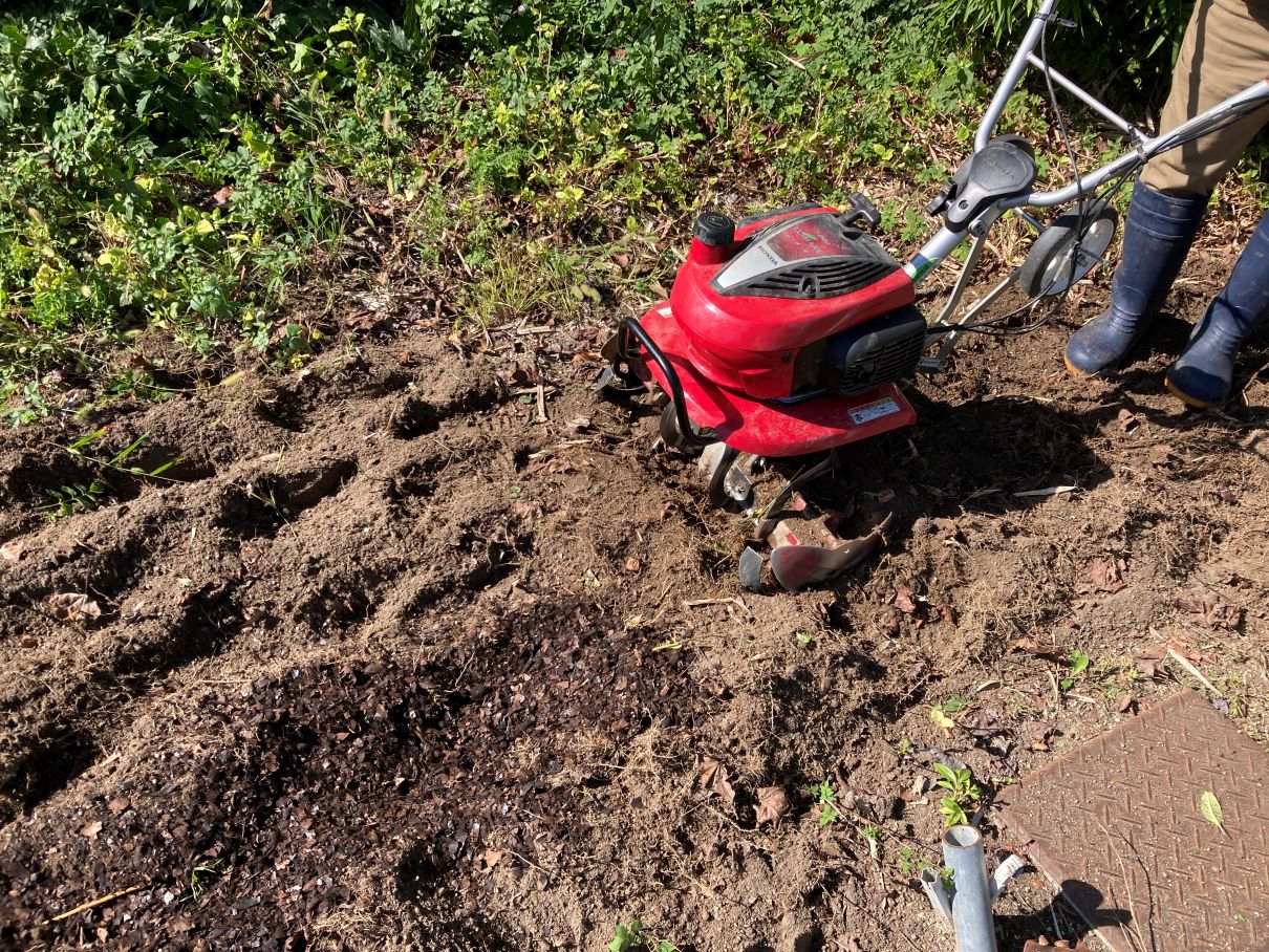 1週間後のボランティアさんの植替えに向けて花壇起しと施肥です