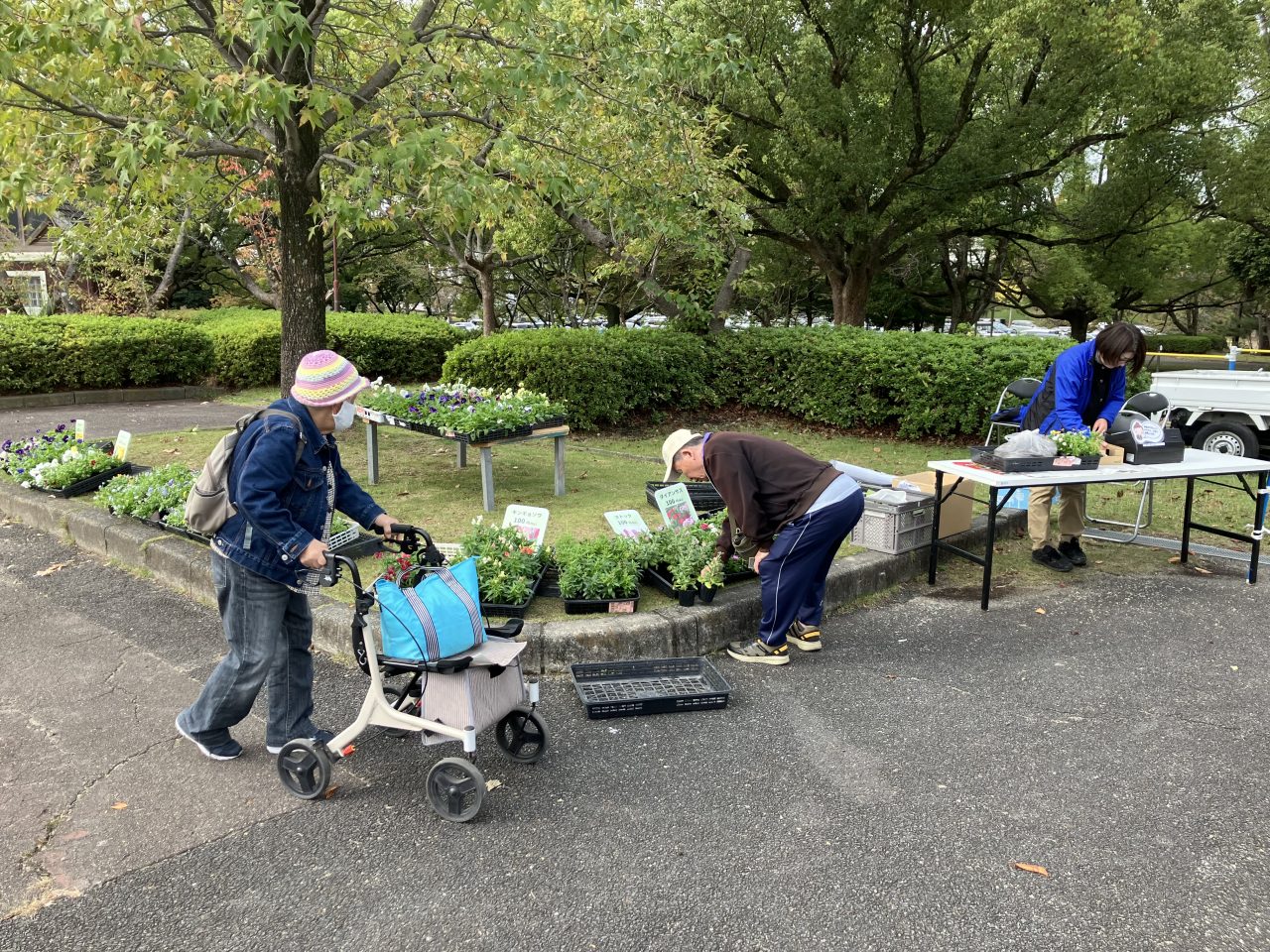 本日は、唐竹公園にて花苗の移動販売を行いました。