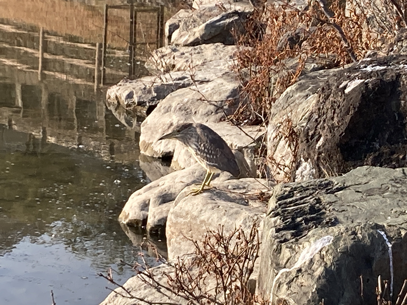 夕方から川や池へ出かけていって魚を捕る夜行性のサギなのに、今日は朝から姿を見かけました。