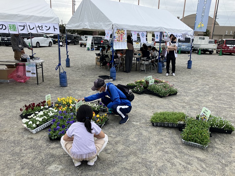 スタッフ一同、テントを張って、花苗準備して、景品も買ってお待ちしています。