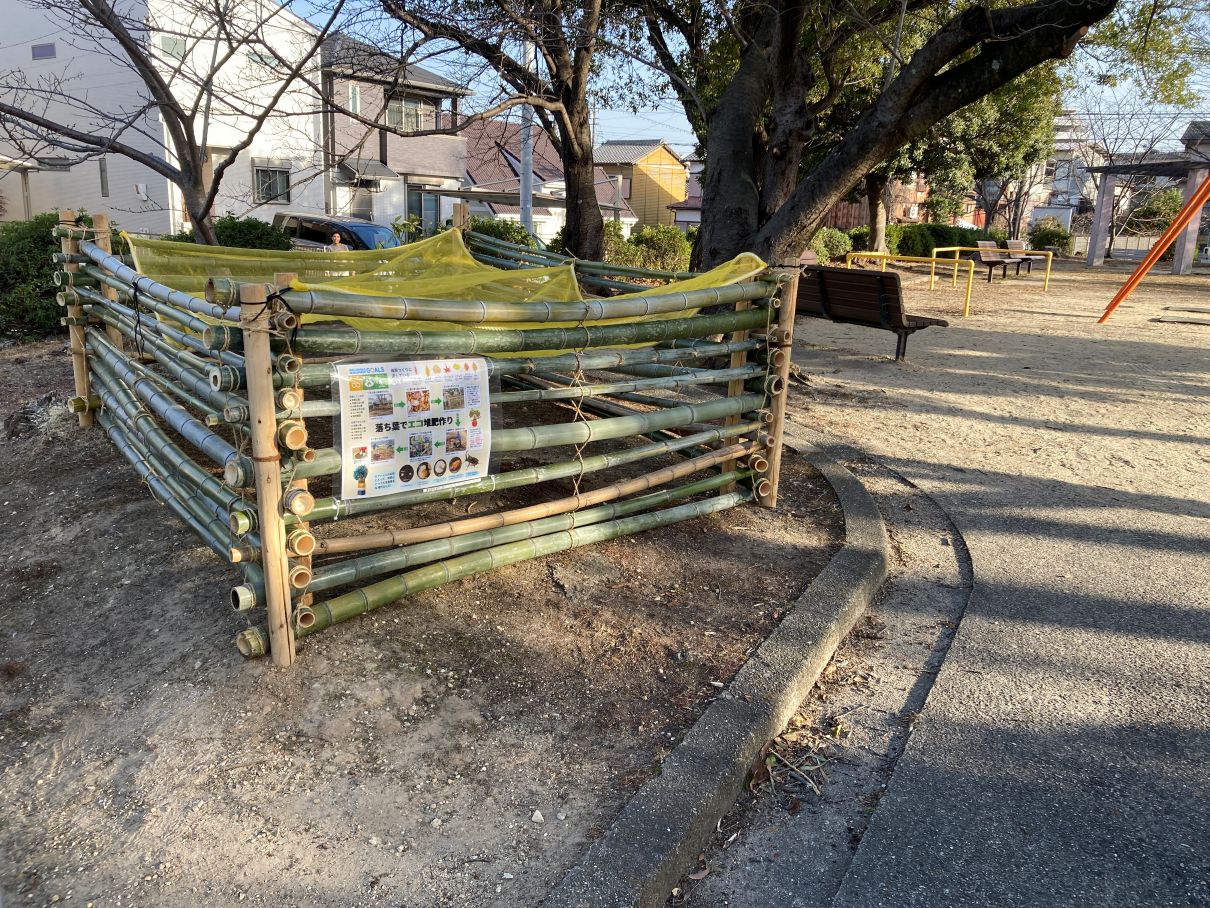 公園内に設置しました。今まではゴミ袋に入れて焼却処分していましたが、これからは