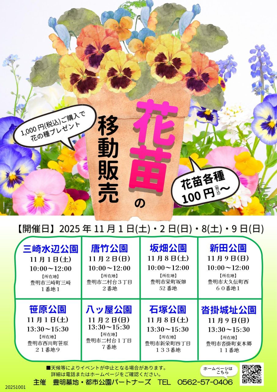 今年初めて、8つの公園で花苗の移動販売を行います。
