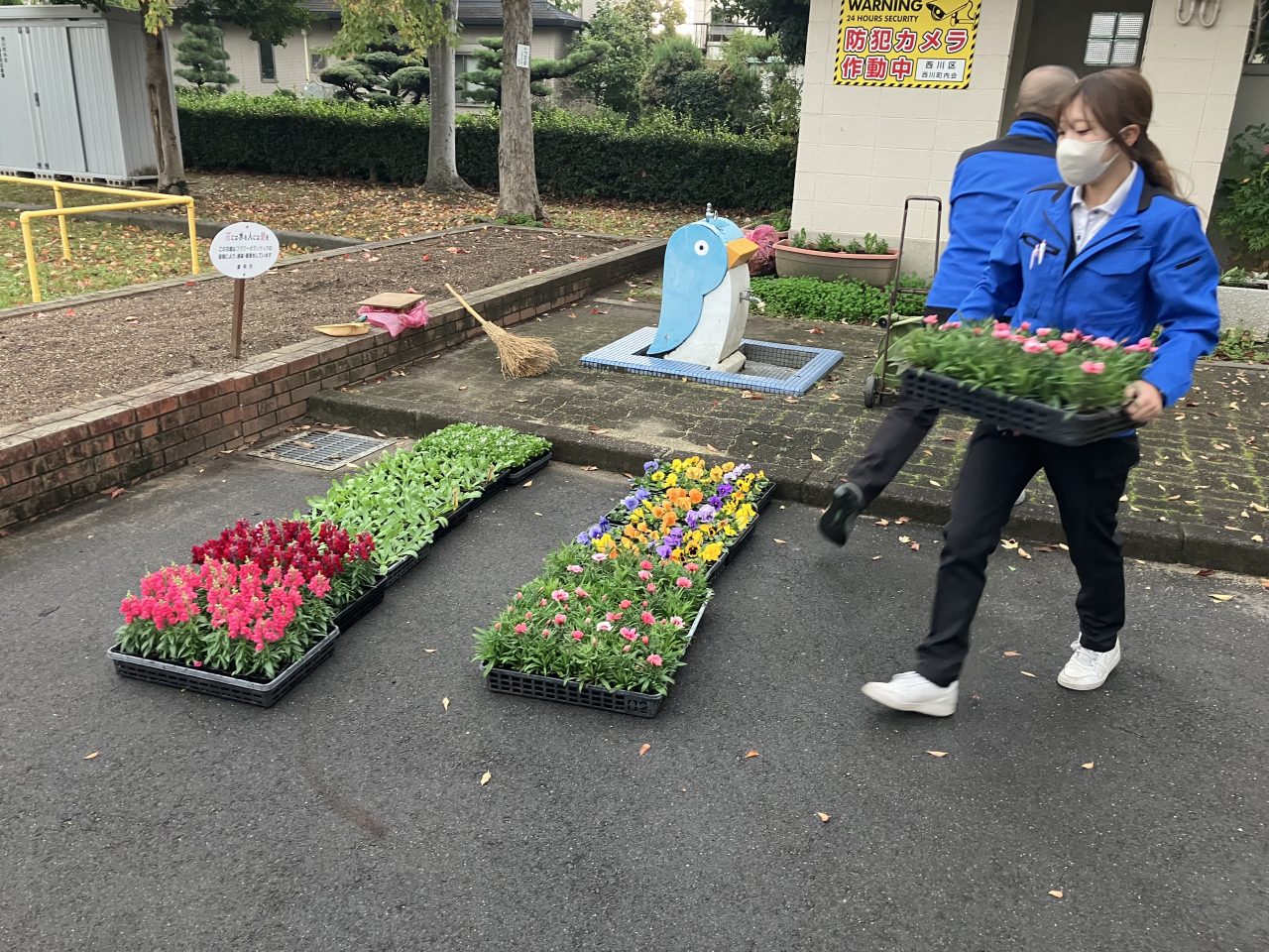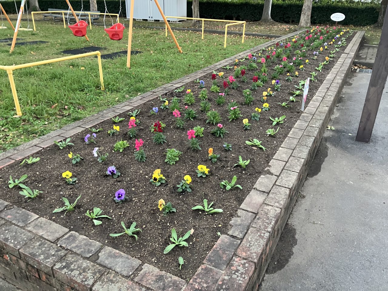 月曜日にえびす公園の花壇に花苗と肥料をもっていきました。