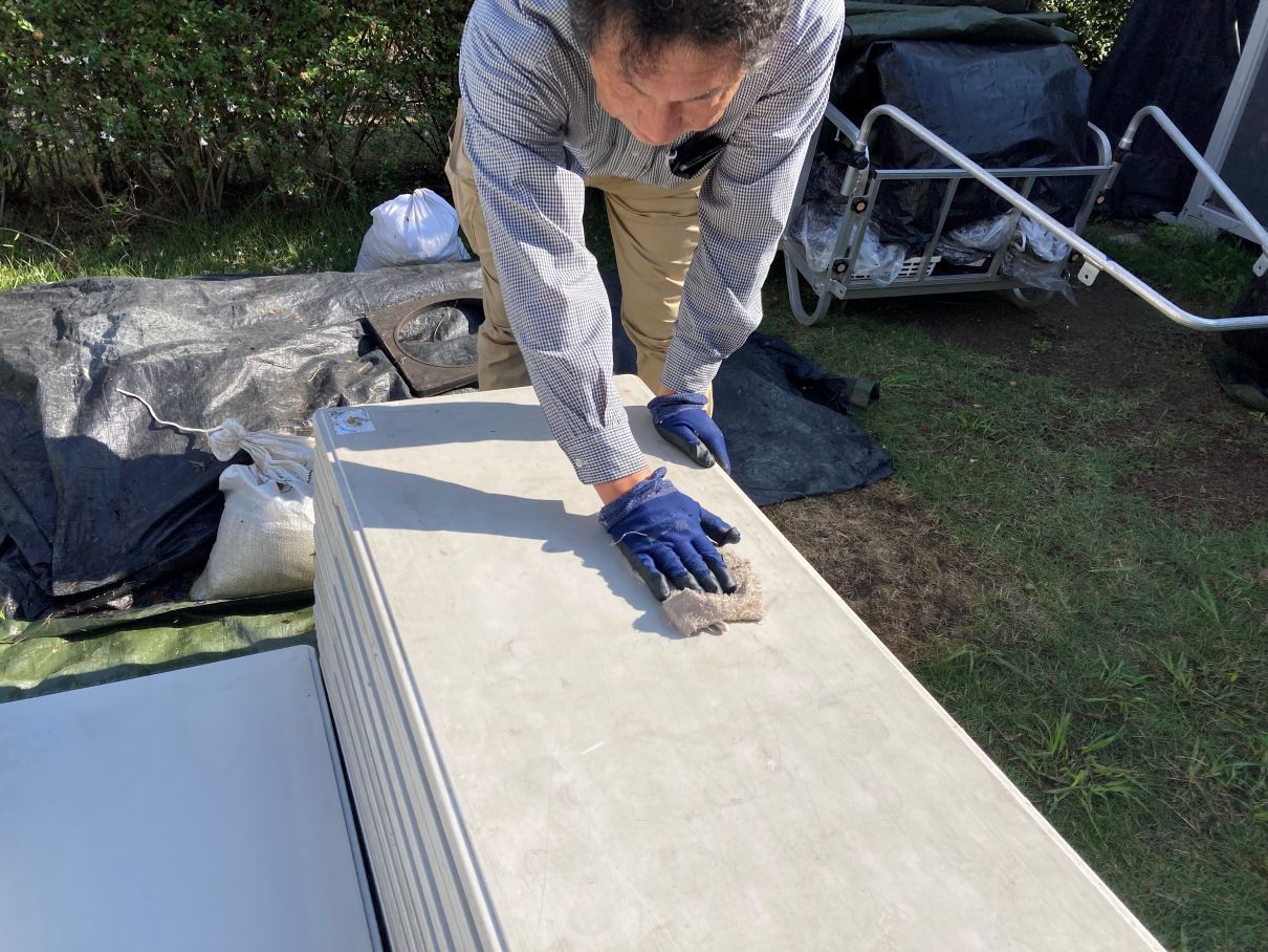 当日の雨で濡れてしまったテーブルやテントはきれいに拭いて