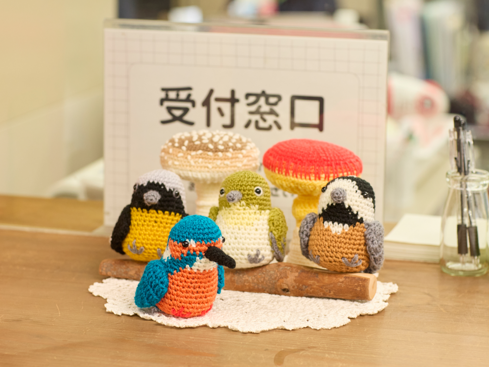 実は、私は編み物をするのが好きで、公園で出会ったカワセミやヤマガラ、キノコなどを「あみぐるみ」で作ってみたことがありました。出来上がったものを管理事務所に飾らせてもらったのですが、他のスタッフや来園者の方などに大変好評で、趣味の活動のモチベーションアップにもつながりました!