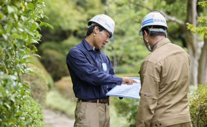 全国各地の大規模開発やスポーツ施設、公園など、多種多様なみどり空間を創り上げる造園工事の現場において、チームを指揮・監督する施工管理を行います。工程や品質、安全、原価、環境などを管理し、地図にも残る“ものづくり”の達成感・やりがいを感じられる仕事です。