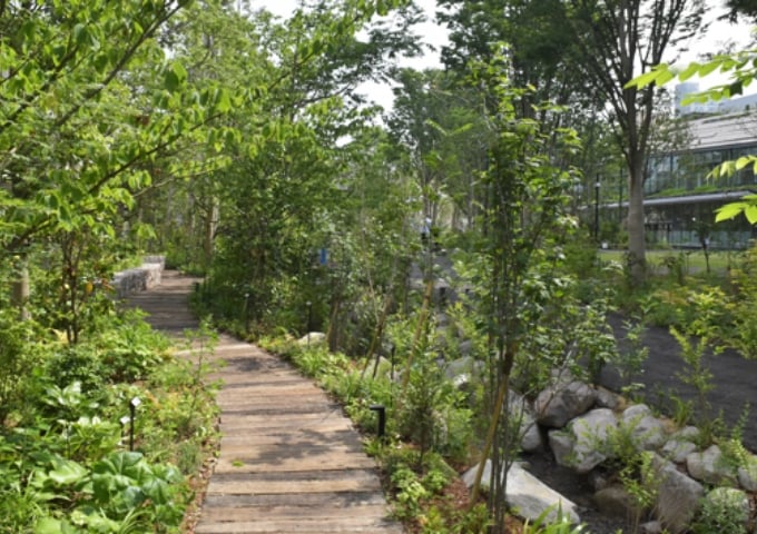特許取得技術「表土ブロック移植工法」をはじめ、大径木移植や高木重機移植など、長年培った造園技術と豊富な経験・ノウハウを活用します。また、さまざまな技術を組み合わせて「みどり空間」の保全・創出・再生をトータル的にサポートする自然再生なども手掛けます。