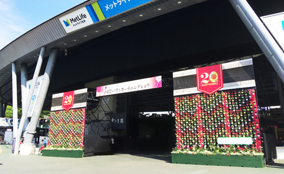 西武造園グループ3社(※)は西武グループ企業の一員として、今年で記念すべき第20回目を迎える「国際バラとガーデニングショウ」への協力・貢献を行いました。会場「メインゲート」および「正面ウェルカムガーデン」にて、壁面緑化等の技術を活かした装飾協賛を実施しました。