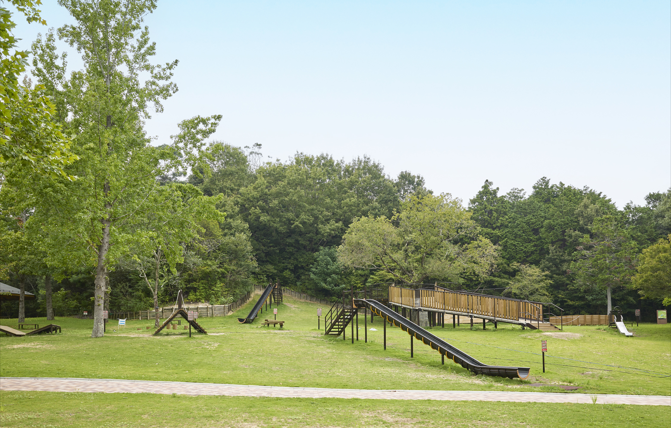 本工事は、滋賀県とローム株式会社による「人と森をつなぐ」協定に基づくもので、『すぐそこにある森の入り口となる公園』を目指して、植物園エリアや遊具広場等を含め公園全体のリニューアル工事を行ったものです。