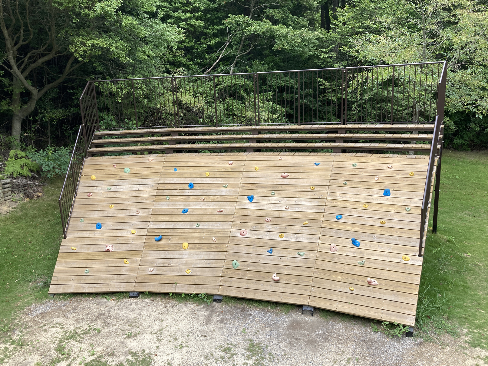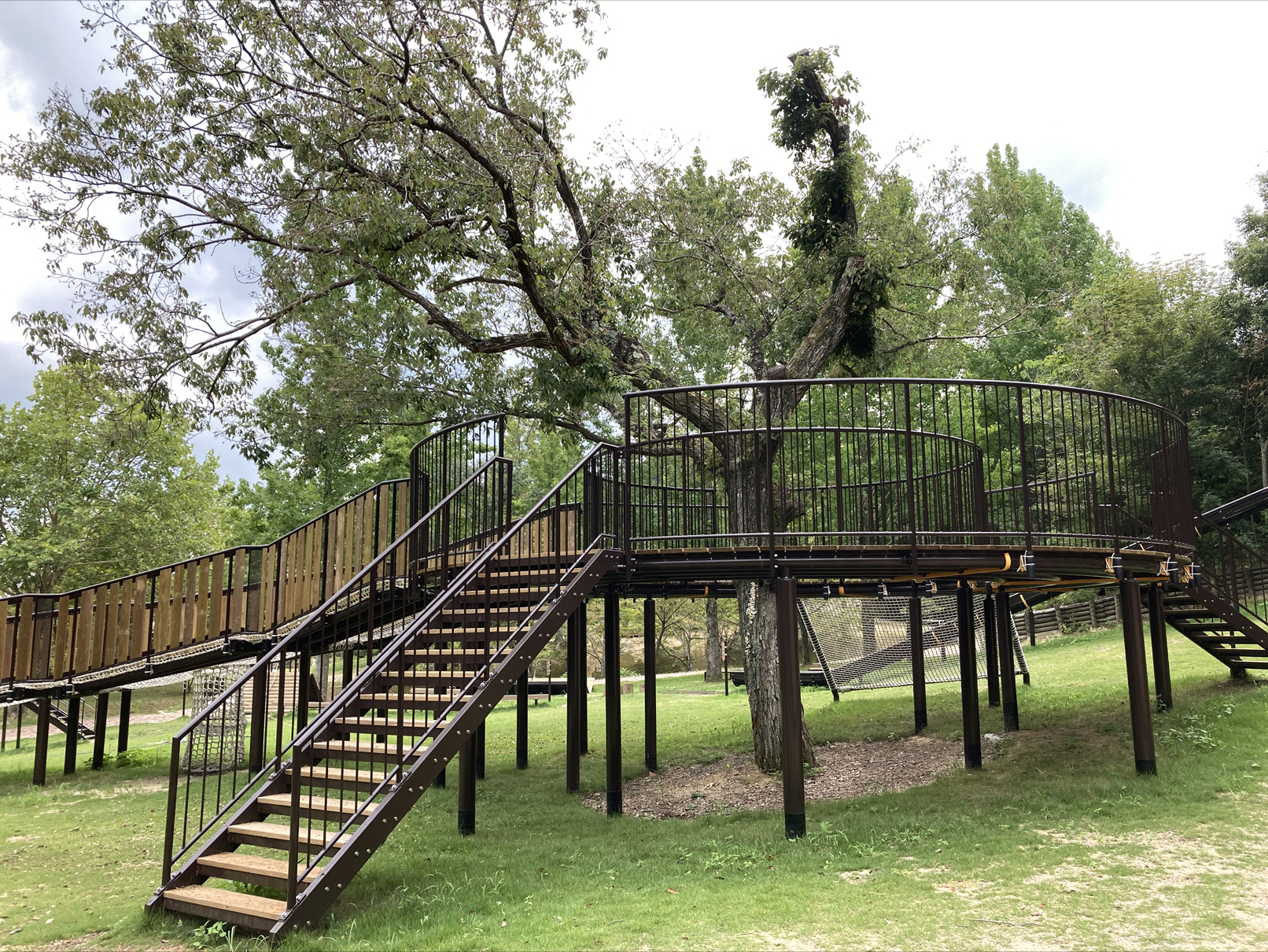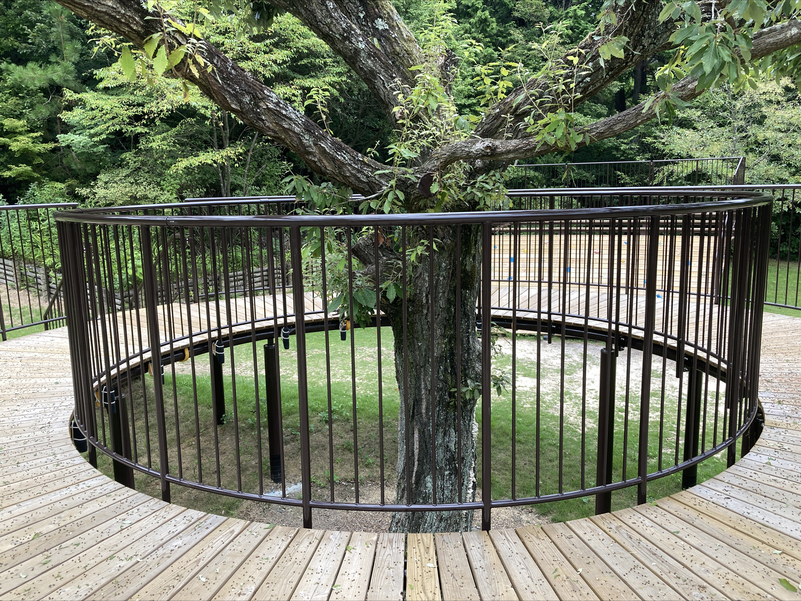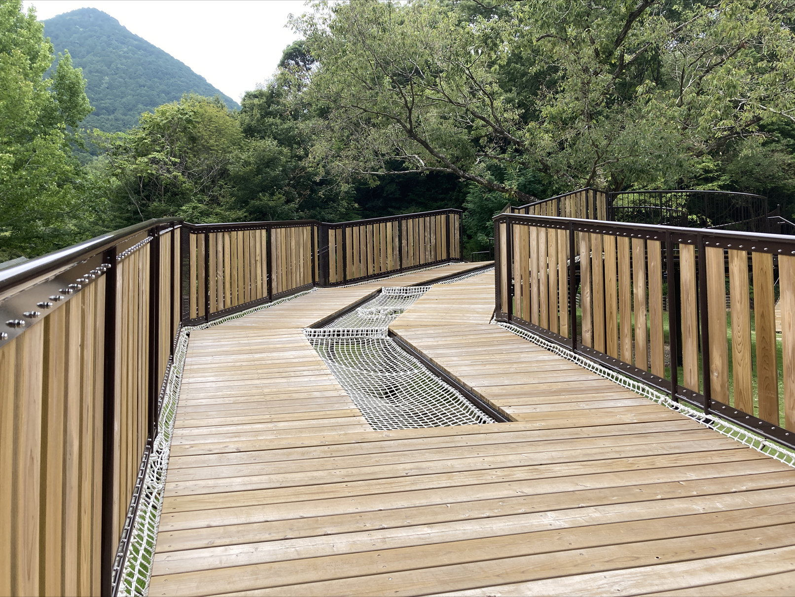 当社は住友林業緑化株式会社の下請けとして、滋賀県産材を活用した約10基の大型遊具等を遊具広場エリアに新たに設置したほか、植物園エリアの芝生広場やウッドデッキの整備に携わりました。