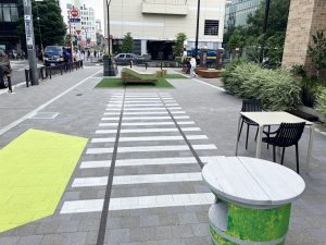 その後、2023年9月に歩行者利便増進道路制度の指定区域となり、調布市から占用者として指定された京王電鉄株式会社によって鉄道跡地としての記憶や、暫定活用時の記憶を残しつつ、機能を損なわない快適な道路空間を目指して、段階的な整備が行われてきました。