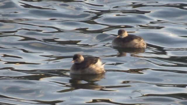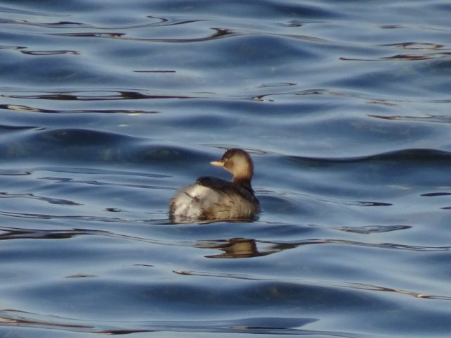 カイツブリが水面に揺られながら泳いでいました。