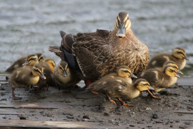 7月は谷津干潟で野鳥が子育てをする季節です。観察センターボランティアの案内で子育て中のかわいいカルガモの親子を探してみよう。
