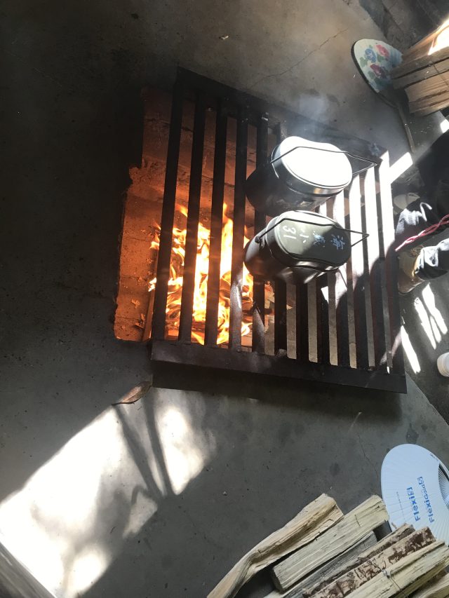 しかし、野外調理場のかまどの炎が燃え盛り、そんな天気を吹き飛ばしてしまいました。