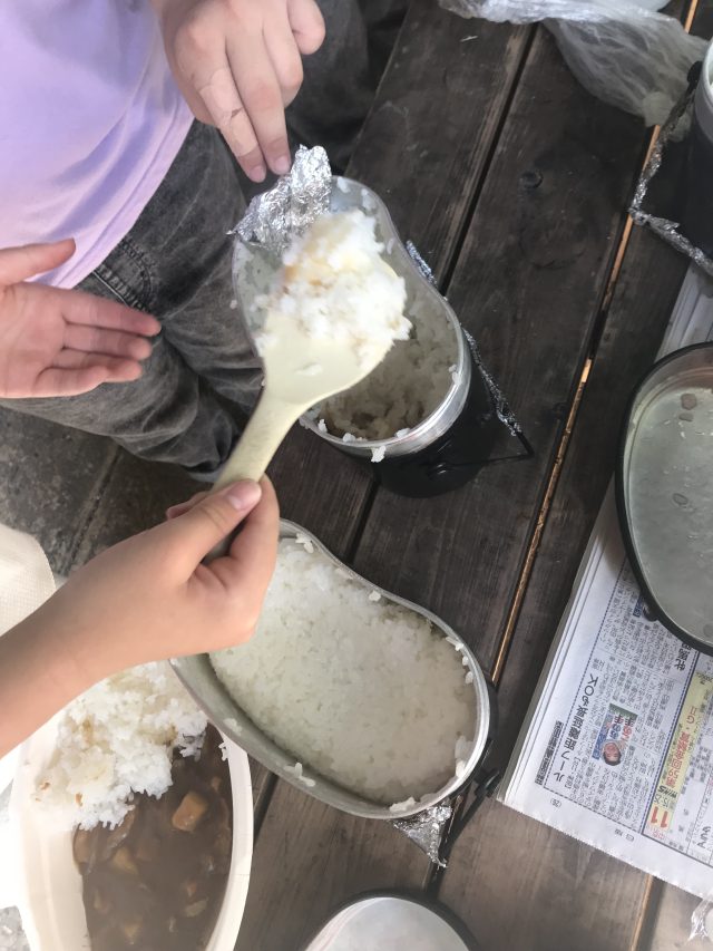 楽しく作ったカレーと飯盒で作ったご飯は家とはまた違ったおいしさを感じますね。