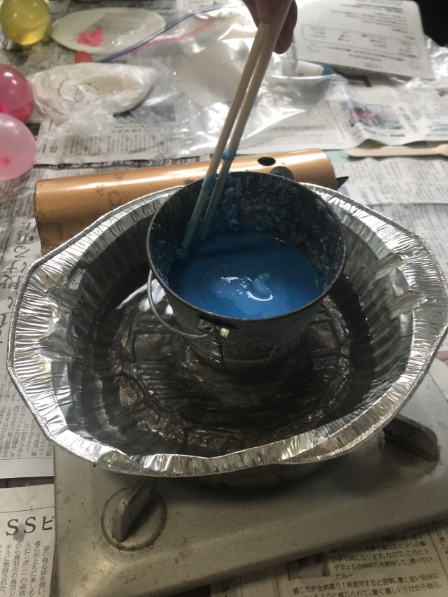ロウソクのロウだけ溶かし水風船につけて作っていました。
